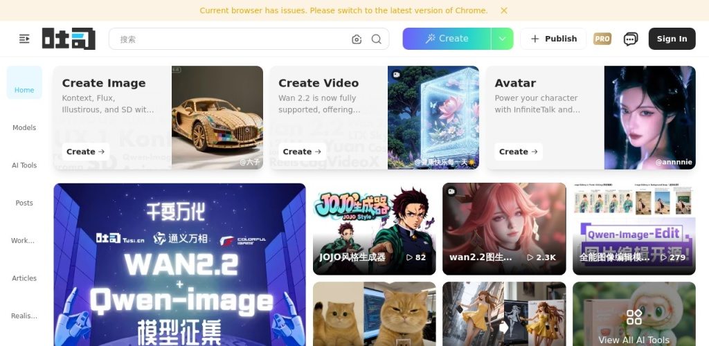 - 模型分享社区:吐司Tusi.art提供了一个开放的模型分享社区,用户可以在这里发现、分享和使用各种有趣的模型,激发创作灵感。