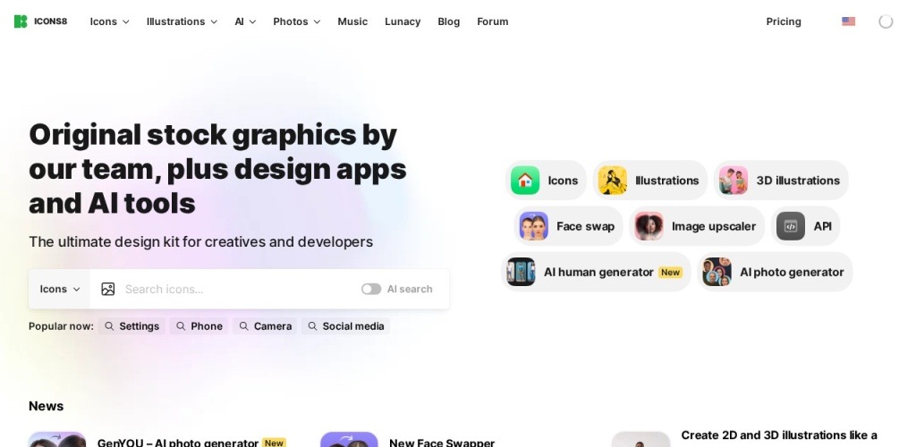 Icons8并非传统意义上的AI,而是一个综合性的数字资源平台。它提供免费的图标、图片和音乐资源,旨在帮助用户更轻松地完成设计任务。虽然Icons8没有直接应用人工智能技术,但其强大的搜索功能和智能推荐系统却能极大地提高用户的资源查找效率,这与AI的智能辅助功能有异曲同工之妙。