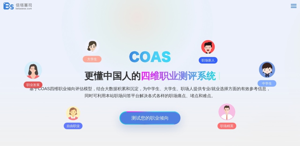 倍塔塞司的COAS职业倾向测评涵盖了兴趣、能力、价值观、人格等多个方面,为高中生和大学生提供了明确的职业方向。通过这项测评,他们可以认清自己的兴趣和能力,为未来的职业生涯打下坚实的基础。