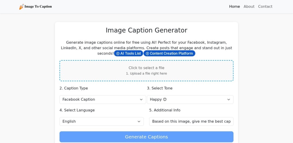 多场景适用:无论是社交媒体帖子、博客文章还是其他需要图像描述的场景,Image to Caption都能派上用场,让你的内容更具吸引力。