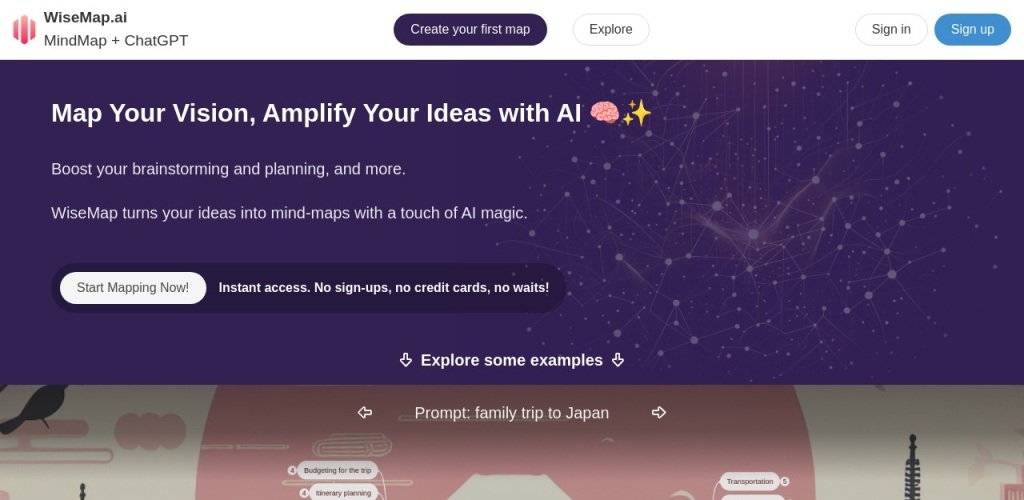 WiseMap.ai采用了先进的人工智能技术,能够根据用户输入的关键词快速生成思维导图的初始结构,并根据需求自动展开相关想法。这意味着您无需从零开始构建思维导图,而是可以借助AI的智能分析,更高效地梳理思路和拓展创意。