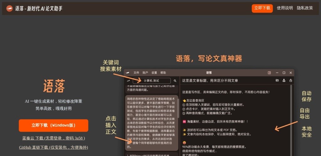 目前,语落论文助手已在Windows平台上线,免费供广大用户使用。作为一款新时代的学术研究工具,语落无疑将为广大学者带来更加便捷、高效的论文撰写体验。