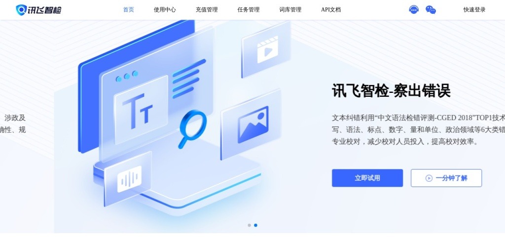讯飞智检是由科大讯飞股份有限公司旗下开放平台推出的一款人工智能校对与内容安全保障的产品。它基于海量数据标注与深度学习算法,帮助企业与个人拦截文本错误与内容风险,实现文本校对和内容合规的智能、高效处理。