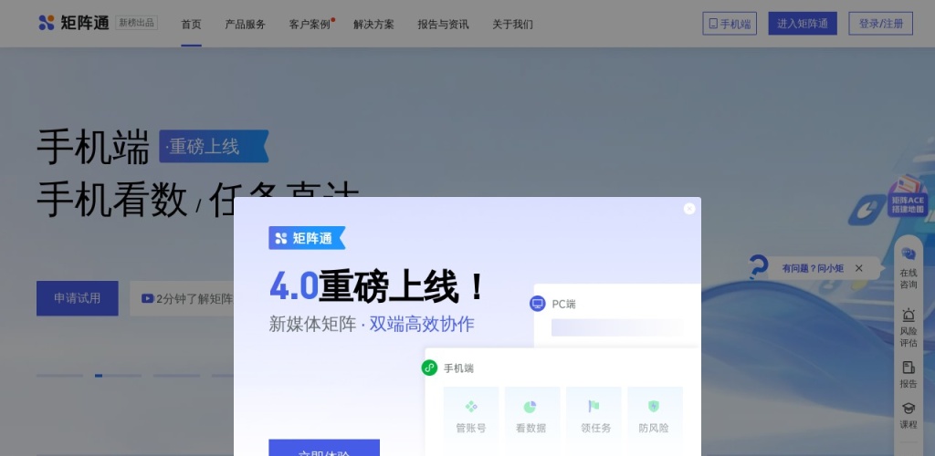 回答:矩阵通通过一个中台实现运营人员、账号的统一管理,有效减少风险事件,保证企业矩阵的日常运作。