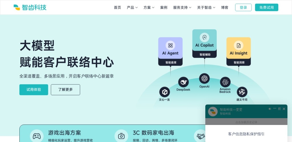 智齿科技,一体化「客户联络」解决方案提供商,一体化「客户联络」解决方案提供商。智齿科技为客户提供智能客服机器人、人工在线客服系统,云呼叫中心、工单系统、智能外呼机器人、智齿智客私域SCRM等全渠道、全功能、全流程产品。智齿科技解决企业的在线客服系统、呼叫中心的智能化升级问题。