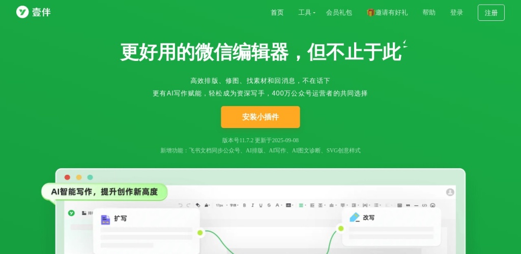 壹伴微信编辑器插件-200万公众号新媒体运营者青睐的在线微信编辑工具、拥有万千公众号模板,公众号素材样式、具备公众号排版,多公众号管理,数据分析,定时群发等功能