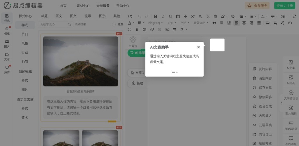 丰富素材:易点微信编辑器提供大量精美图片、字体和样式,满足用户各种排版需求。