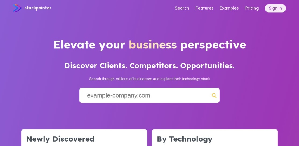 Stackpointer是一个创新型的综合性商业搜索引擎,专注于通过分析企业的技术栈为创业者、市场营销人员和销售人员提供详尽的商业洞察。