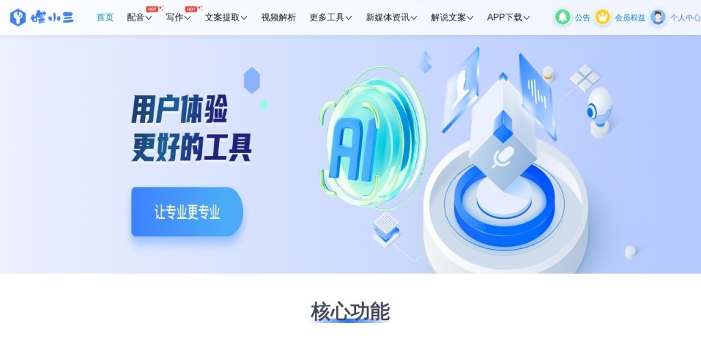 媒小三是一个实用的新媒体工具网,提供各种功能如 AI 配音、魔法写作、魔法绘画等,帮助新媒体人一站式快捷操作。产品定价根据功能和使用情况而定。