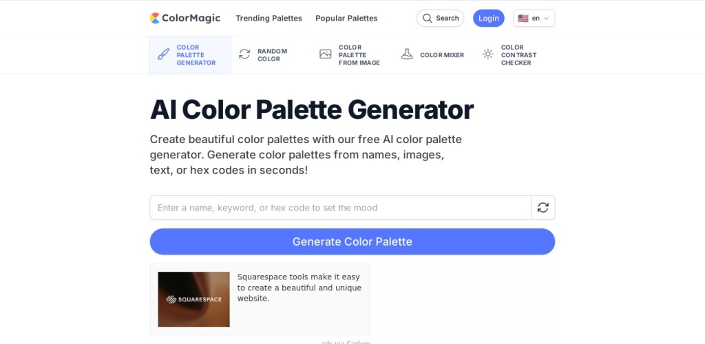 AI调色板生成:根据用户输入的关键词,ColorMagic能够自动分析并生成与之匹配的色彩方案。