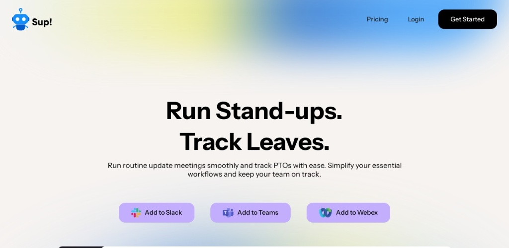 每日无缝站立:Sup Bot可以帮助团队成员以异步方式进行每日站立,节省时间并提高效率。