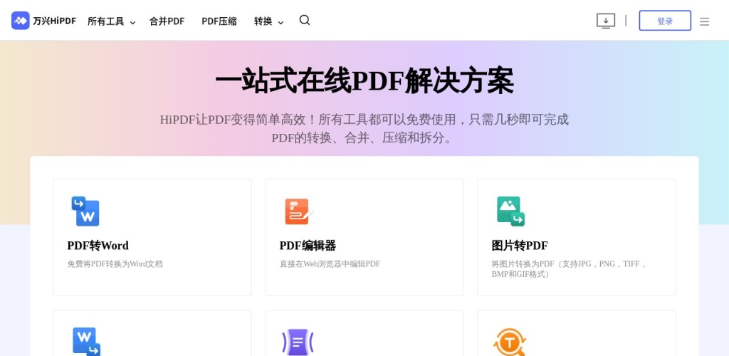 Hipdf是一款全面且高效的在线PDF处理工具,用户可以通过简单的操作完成PDF的各种转换、编辑、压缩、合并、分割等任务。该工具支持免费使用,且功能强大,能满足多种PDF处理需求。