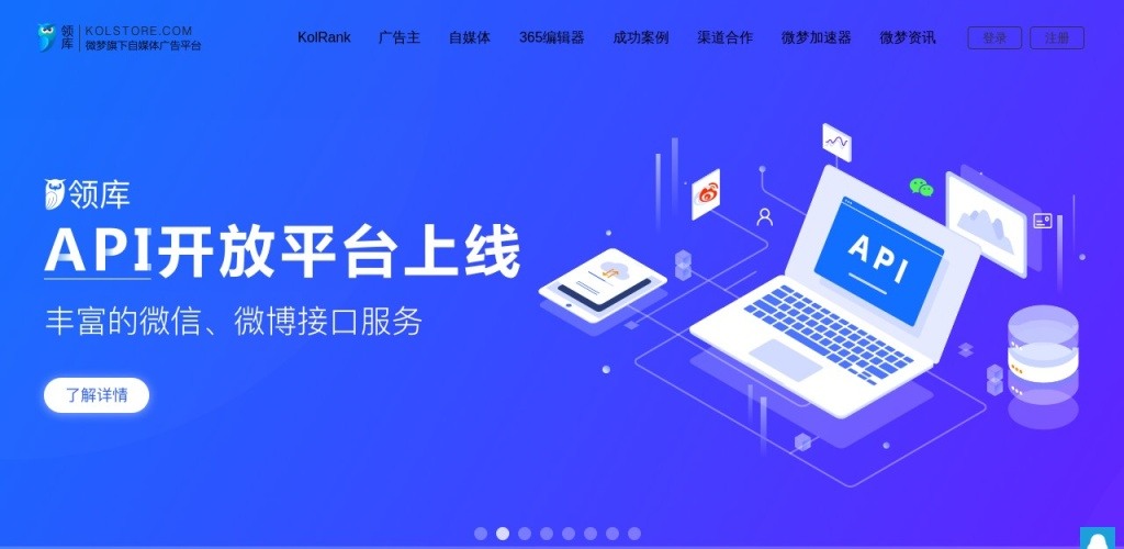 领库-社交自媒体广告平台,为您提供社会化媒体营销、社交媒体意见领袖精准广告投放等服务!想了解更多微博营销推广、微信营销推广等信息,请到领库-社交自媒体广告平台!丰富媒体资源,精准广告投放!