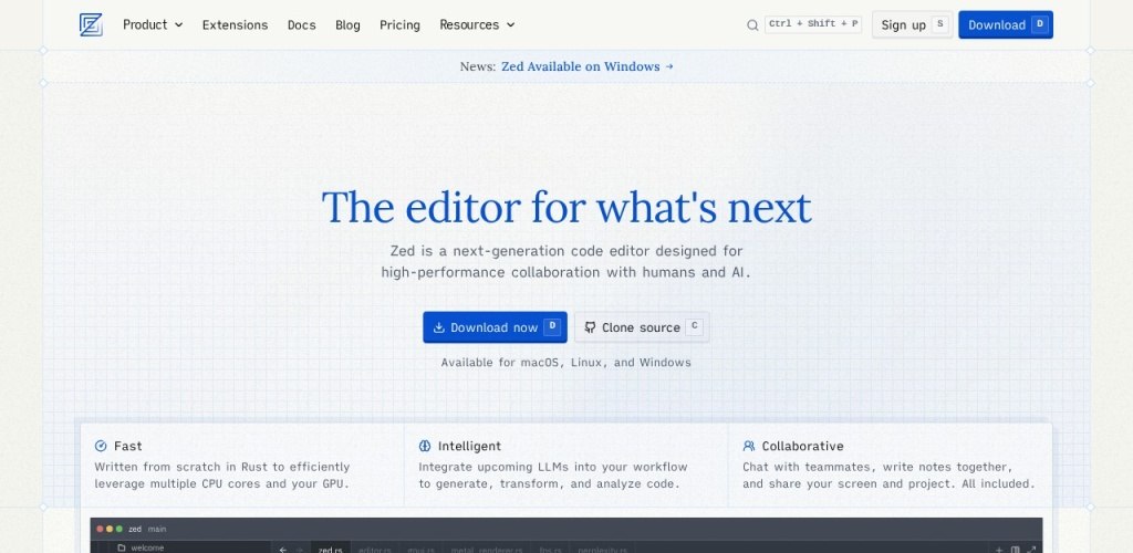 Zed通过快速启动、低延迟输入、高效利用CPU和GPU资源以及支持AI生成的代码等功能来提高程序员的生产力。