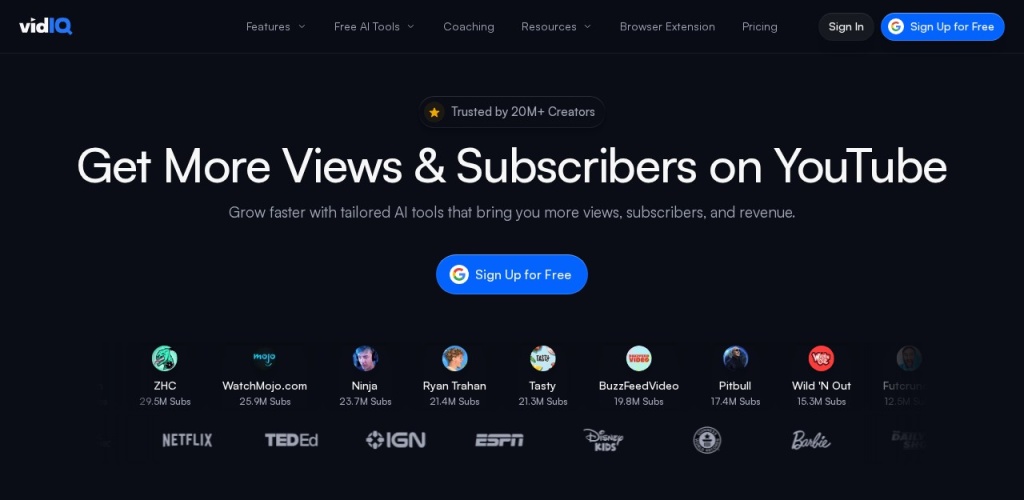 本站 Ai工具集提供的 VidIq官网网址来源于网络,对该网址的指向,不由 Ai工具集实际控制,在 2024年8月13日 下午2:05首发收录时,该网页上的内容,都属于合规合法,后期网页的内容如出现违规,可以直接联系网站管理员进行删除, Ai工具集不承担任何责任。