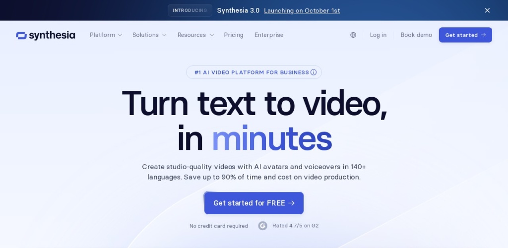 文本转视频:用户只需输入文本,Synthesia便能在几分钟内生成相应的视频。