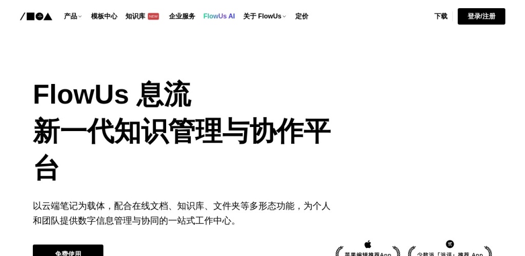 高度集成:FlowUs AI与FlowUs息流的模块化笔记文档平台完美融合,为用户提供一站式的知识管理和协作体验。