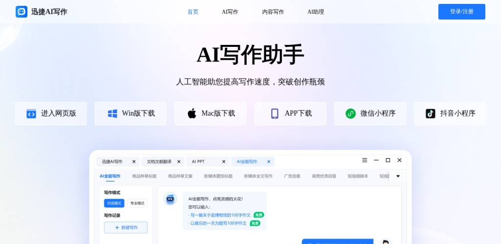 迅捷AI写作软件具备先进的人工智能技术,能够快速生成高质量的文本内容。无论是文章、博客、推广文案还是产品描述,都能得到迅捷而精准的创作。