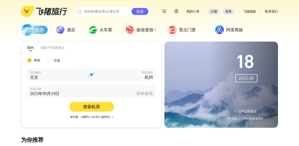 一站式旅行服务:飞猪旅行提供机票、酒店、火车票、旅游度假、景点门票、商旅服务、交通出行和旅行保险等多种服务。